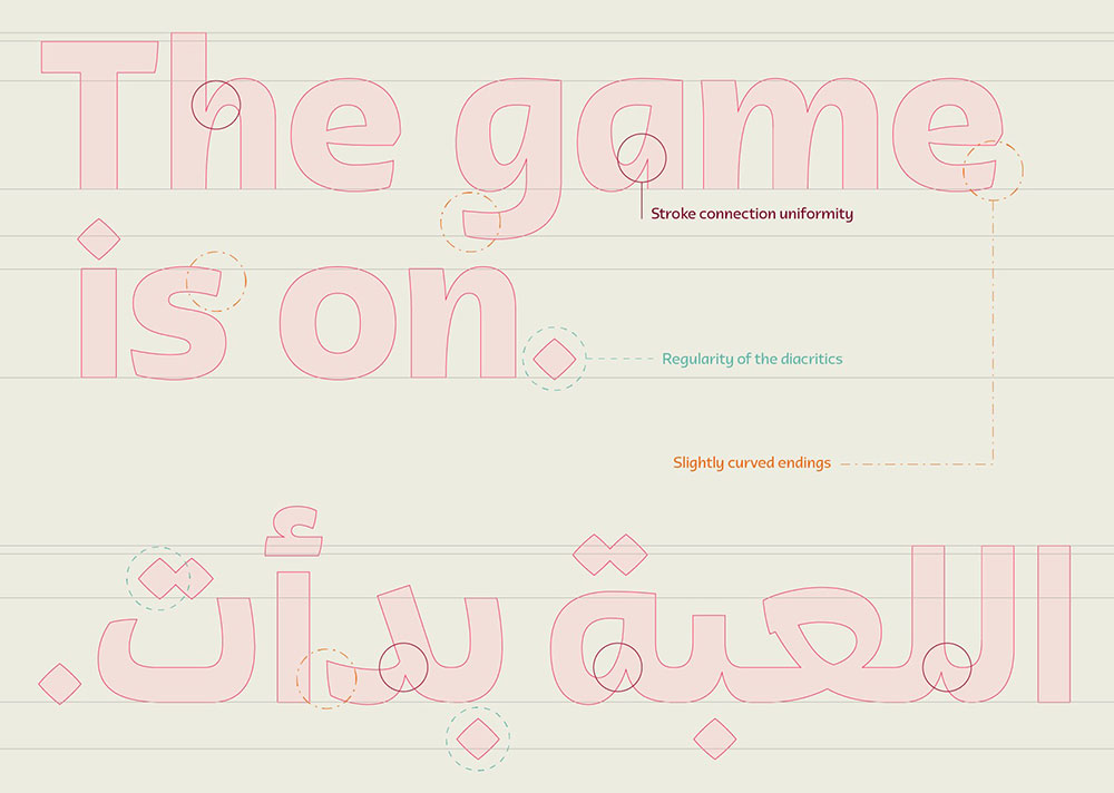 متخصصان تایپوگرافی Dino Santos, Rui Abreu, and Hussein Alazaat در این مرحله از پروژه نقش های اساسی را ایفا کردند. خوشنویسی عربی جریان و شخصیتی منحصر به فرد به همراه داشت، با عنصر کشیده - بسط خطی حروف خاص عربی - به عنوان یک عنصر هویت برند خودنمایی می کند.