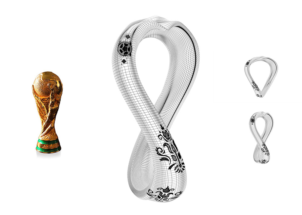 اولین نشان سه بعدی کامل جام جهانی فوتبال. حلقه ای با فرم بی نهایت معرف فرهنگ و فوتبال، با الهام از لباس های عربی، موج های تپه های شنی صحرا، و شکل رسمی جام جهانی. همانطور که می چرخد، می توان یک دایره کامل را دید که شکل فوتبال و مقیاس تاثیر آن را یادآوری می کند. همچنین تعداد (8) استادیومهایی را که در سال 2022 از جهانیان استقبال میکنند و نیز نماد بینهایت، (با توجه به ارتباطات انسانی که مدتها پس از این رویداد دوام آورده است) را منعکس میکند.