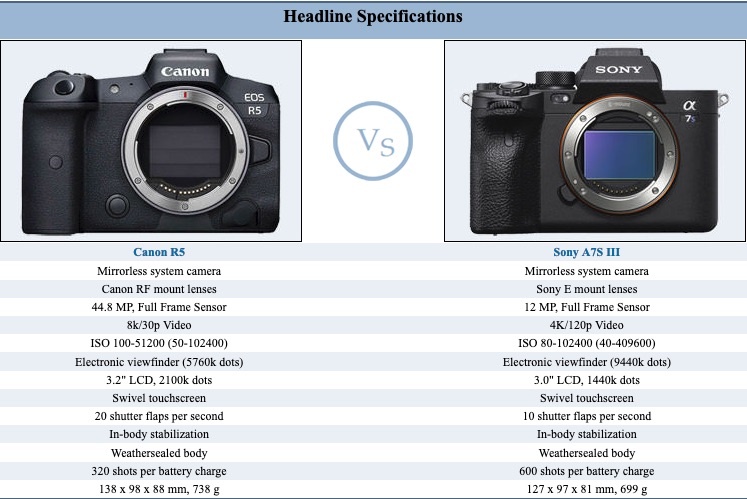 Sony A7S III و Canon EOS R5 دو دوربین پرچمدار اصلی بدون آینه در حال حاضر هستند.