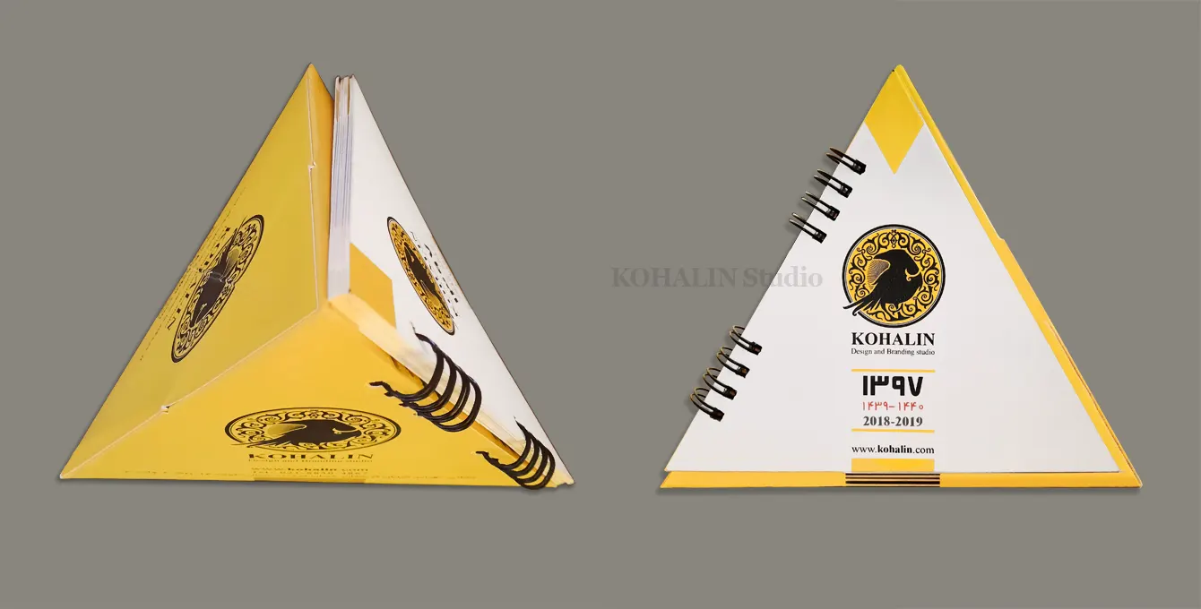 نمونه تقویم رومیزی استودیو کوهالین که برای سال 1397 طراحی و اجرا شد، از نمونه های موفق در این زمینه می باشد.