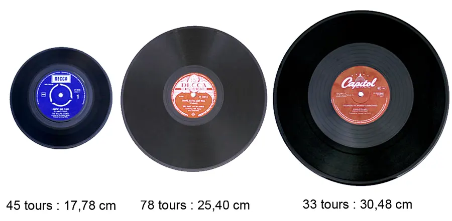 صفحات وینیل LP (با پخش طولانی) اولین بار در سال 1948 ظاهر شدند که به عنوان 33 دور در دقیقه شناخته می شوند، آنها می توانند حدود 60 دقیقه موسیقی را در خود نگه دارند، به این معنی که شما می توانید یک آلبوم کامل را بدون تغییر دیسک گوش دهید. این صفحه گرامافون ها همچنین اولین دیسکهایی بودند که دارای ریز شیار بودند، یعنی شیارهایی چهار برابر کوچکتر از 78 دور در دقیقه. 45 ها بعداً برای قرار گرفتن در جوک باکس ها (گرام سکه ای) اختراع شدند زیرا نسبت به 78 دورها فضای کمتری را اشغال می کنند و موسیقی بیشتری را در خود جای می دهند.