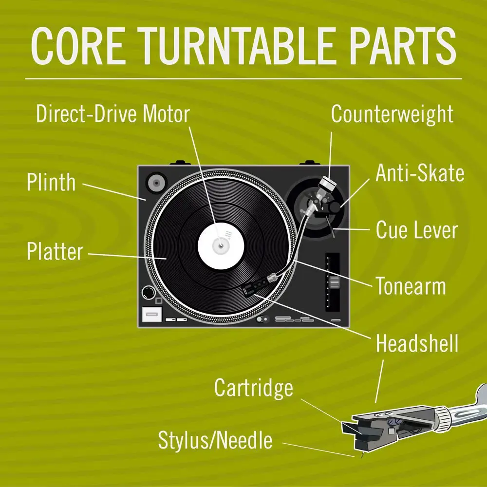 بدیهی است که یک گرامافون شامل موتور و صفحه دیسک، همچنین به همراه یک بازو، یک کارتریج و یک سوزن است. معمولاً یک پیش تقویت کننده نیز دارد که به شما امکان می دهد گرامافون را بدون ورودی اختصاصی phono به یک قطعه خارجی متصل کنید.