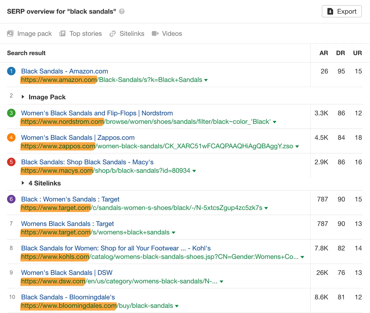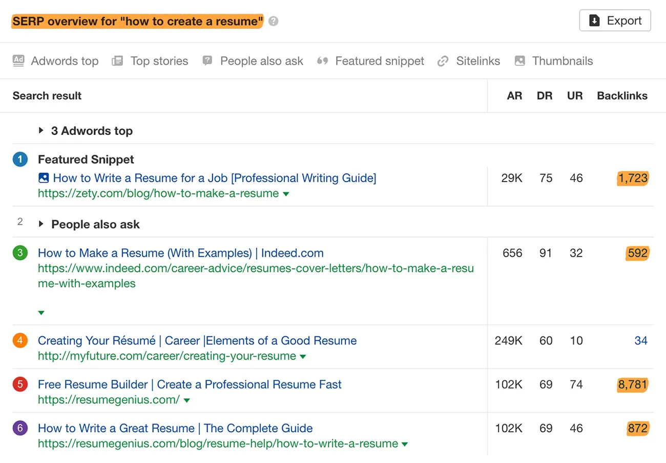 اگر نمای کلی SERP را برای هر یک از این کلمات کلیدی بررسی کنید، باید متوجه شوید که بسیاری از صفحات با رتبه برتر دارای بک لینک های زیادی هستند.