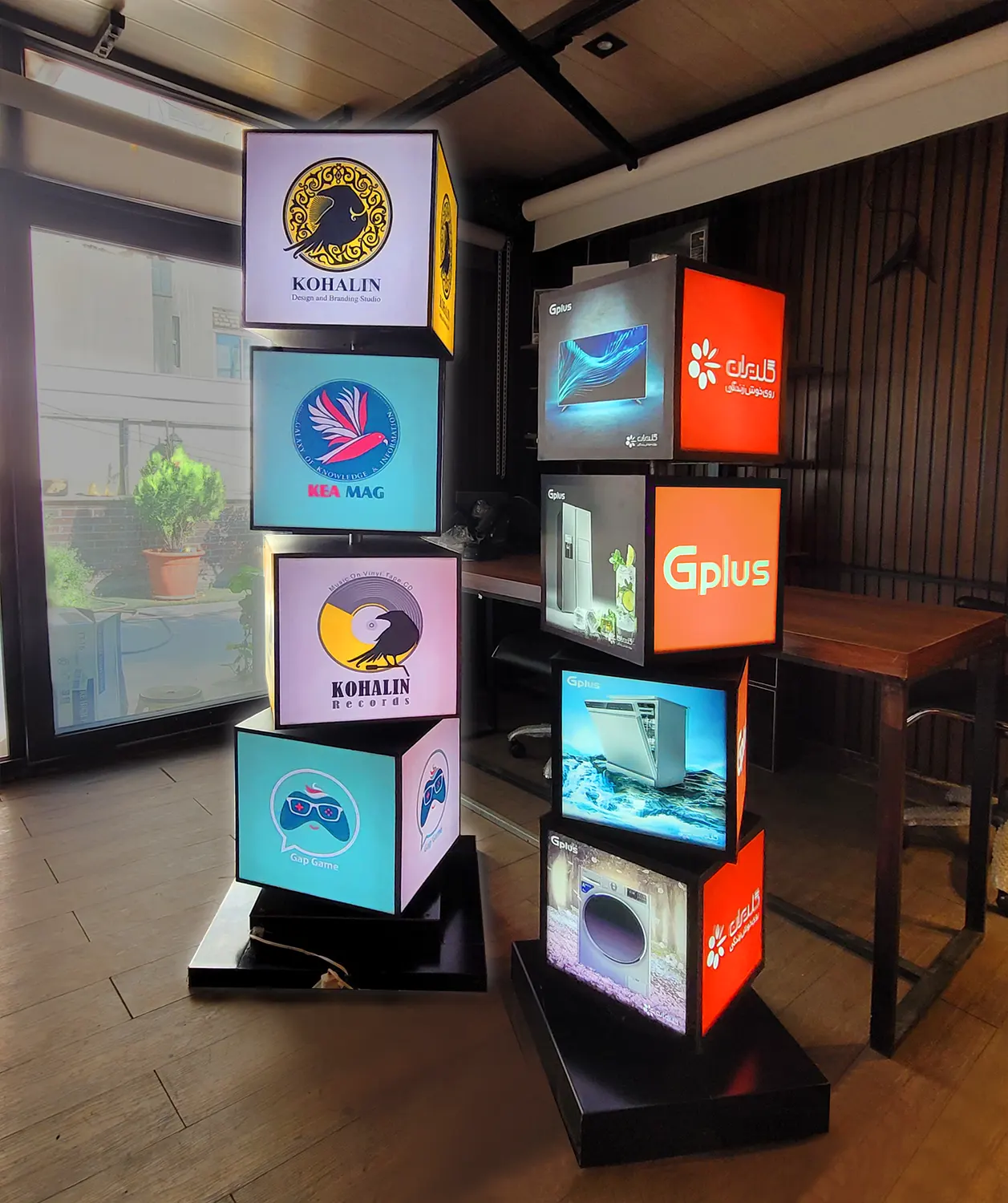 استند روبیک برای اولین بار توسط تیم کوهالین طراحی و اجرا شده است. این استند طرحی بی نظیر است و در صورت استفاده در فروشگاه ها و مال های بزرگ به عنوان راهنمای حضور برندها، استندی شاخص و چشمگیر می باشد. همچنین استند روبیک در غرفه هایی با ابعاد متوسط یا کوچک، بهترین استفاده از فضا برای نشان دادن برند و محصولات است.