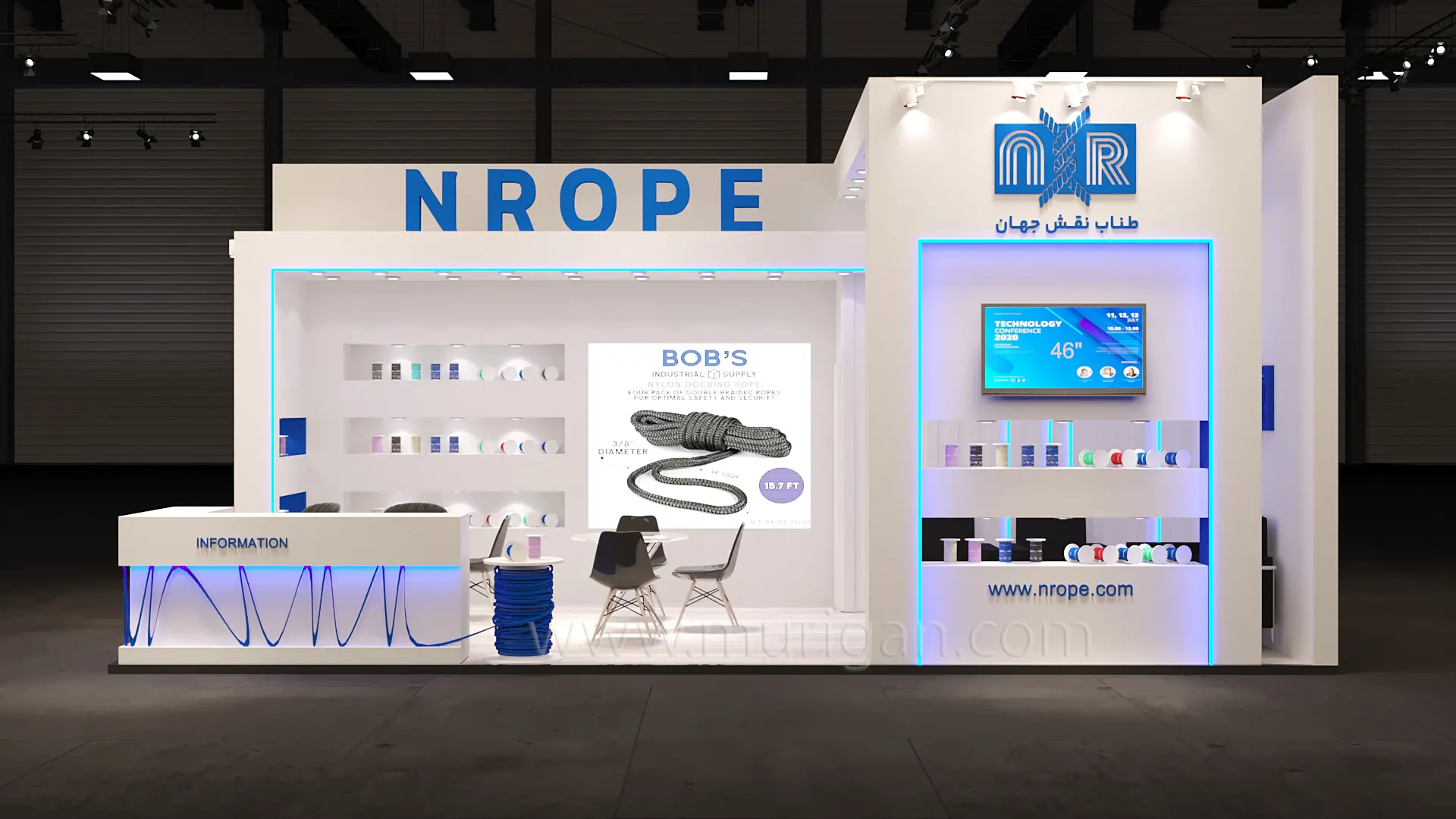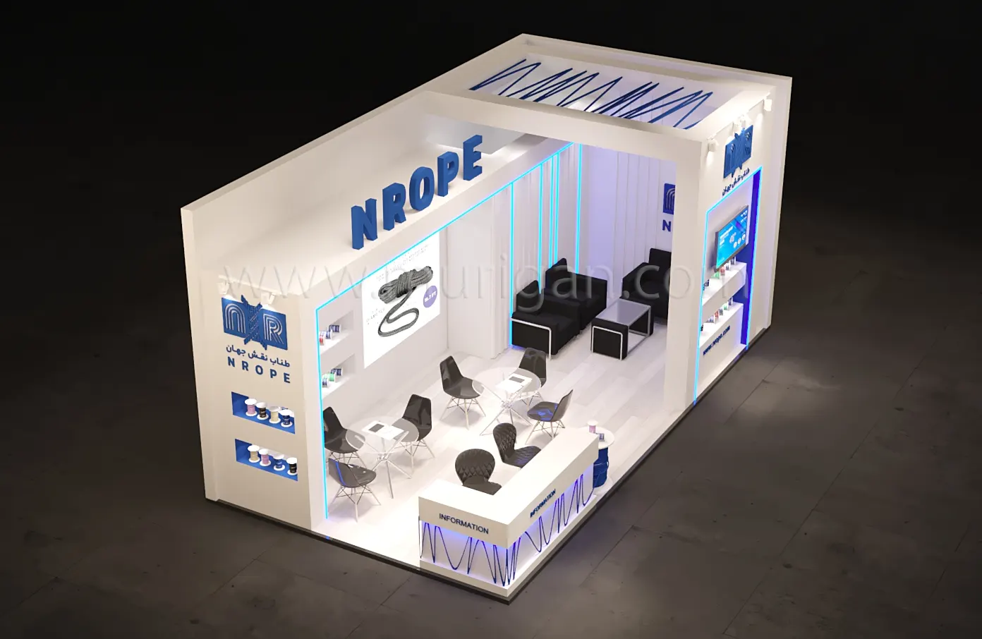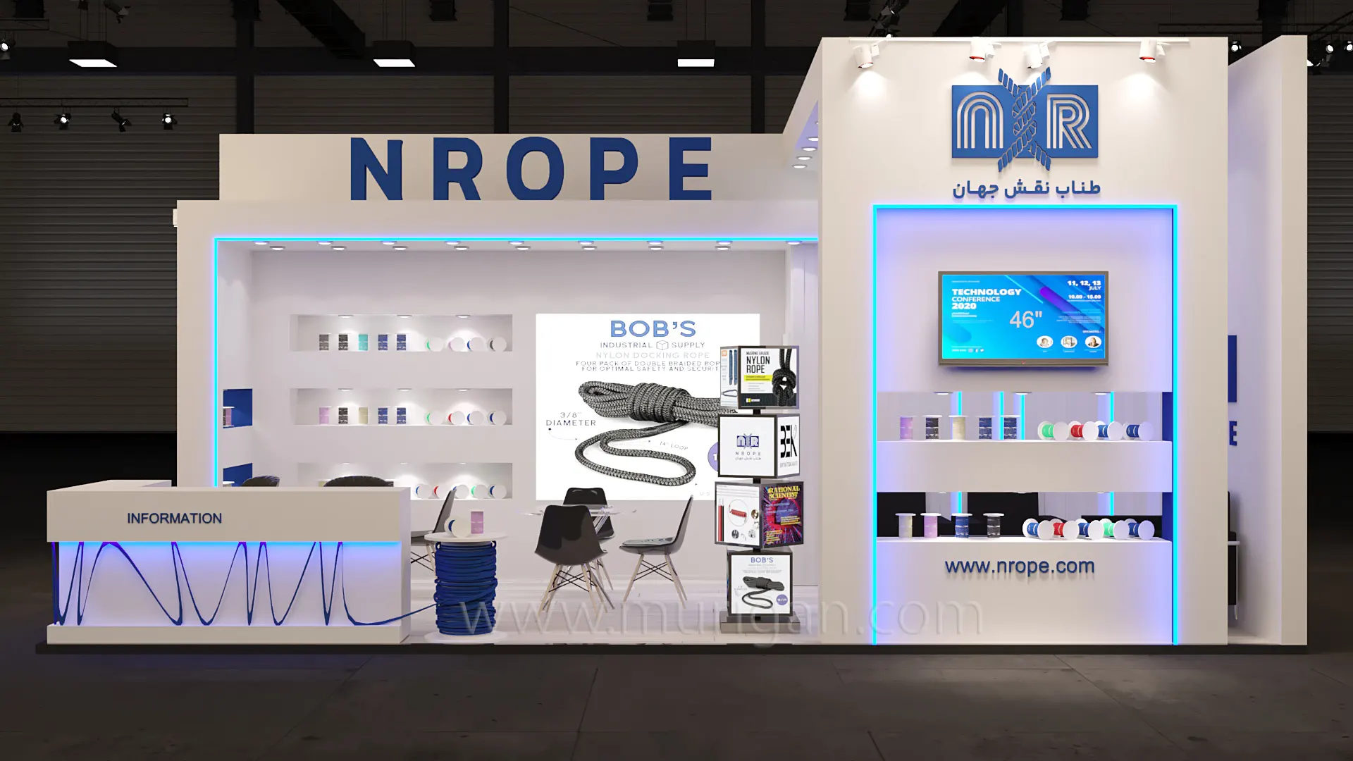 طراحی غرفه شرکت طناب نقش جهان در هجدهمین نمایشگاه بین المللی ایران پلاست تهران (IranPlast) ۱۴۰۳ در محل برگزاری دائمی نمایشگاه های بین المللی تهران