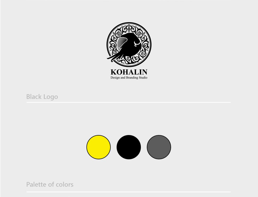 با شناخت کاراکتر کوهالین و انتخاب پرنده کلاغ به عنوان نماد صحنه این قهرمان، ایده طراحی لوگو و هویت سازمانی برای استودیو کوهالین شکل گرفت.