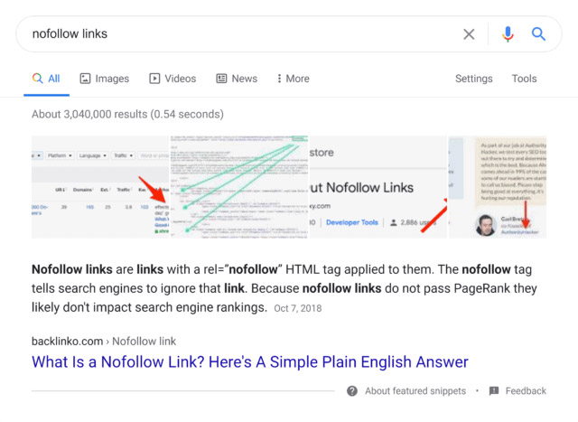 به عنوان مثال، من می خواستم در قسمت Featured Snippet برای کلمه کلیدی “nofollow links” قرار بگیرم.