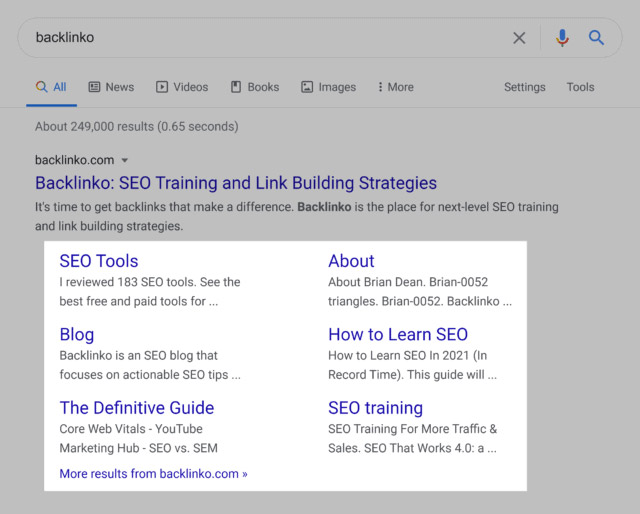 هنگام جستجوی نام تجاری خود در گوگل، احتمالاً پیوندهای سایتی دیگری در زیر نتیجه خود خواهید داشت.