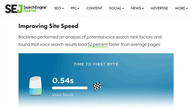 طبق مطالعهای که توسط نیل پاتل انجام شده است، صفحاتی که در بالای صفحه اول گوگل قرار میگیرند، در مقایسه با صفحاتی که در پایین صفحه ۱ قرار دارند، به طور قابل توجهی سریعتر لود میشوند.