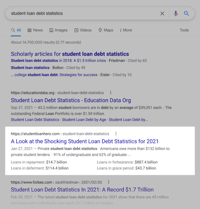 و کار کرد! حدود 2 هفته بعد، بخشی که نوشتم در بالای نتایج جستجو قرار داشت.