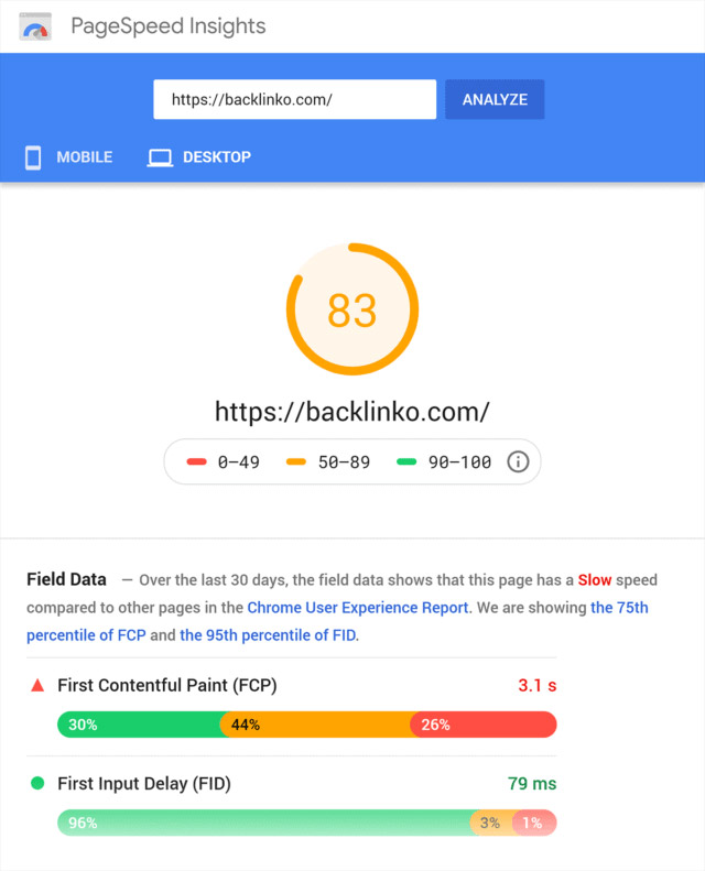 با استفاده از PageSpeed Insights گوگل می توانید یک معیار سریع از سرعت بارگیری سایت خود دریافت کنید.