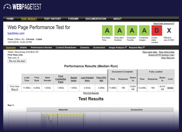 و اگر میخواهید بیشتر در مورد عواملی که سرعت سایت شما را کند میکنند کاوش کنید، میتوانید صفحهای از وبسایت خود را از طریق WebPageTest.org نیز اجرا کنید.