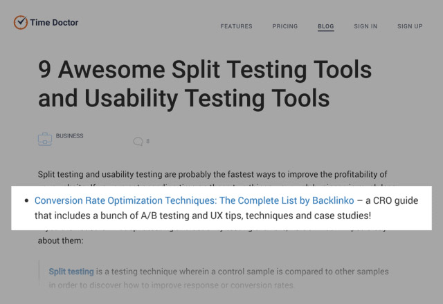 ابتدا، من به دنبال محتوایی در سایت خود گشتم که می دانستم مردم می خواهند به آن لینک دهند. و من این راهنمای بهینه سازی نرخ تبدیل CRO را انتخاب کردم: