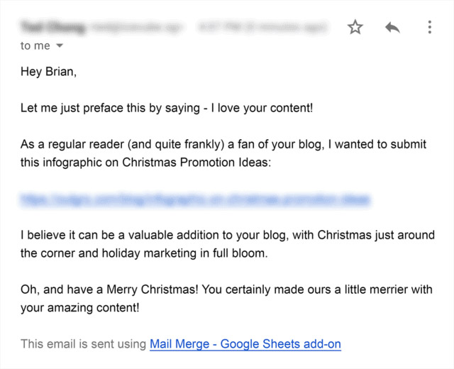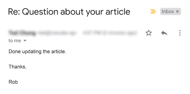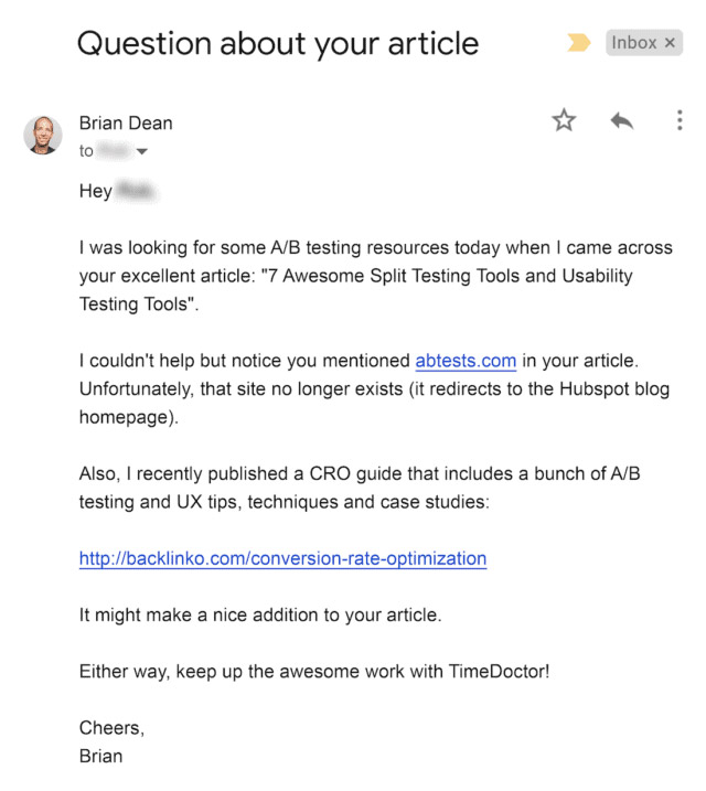 هنگامی که لینک شکسته ای را پیدا کردم که شبیه راهنمای من بود، با شخصی که وبلاگ او را اداره می کرد تماس گرفتم. من به آنها در مورد لینک شکسته خود اطلاع دادم و محتوای خود را به عنوان جایگزین پیشنهاد دادم: