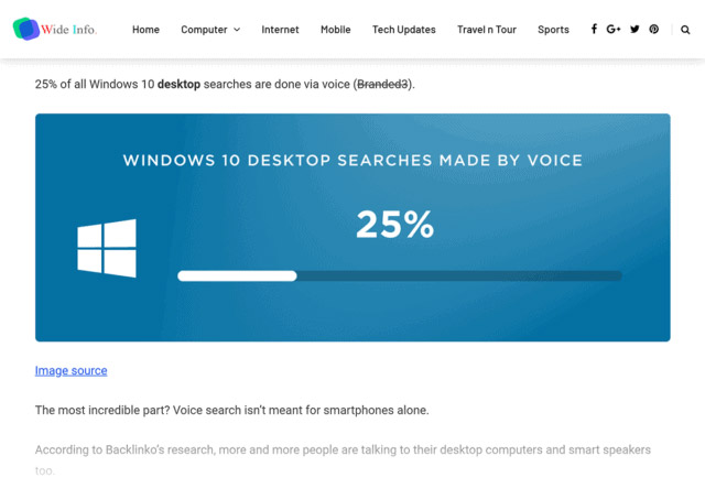 به عنوان مثال، در سال 2019 من راهنمای بهینهسازی پیرامون عبارت رو به رشد «جستجوی صوتی» ایجاد کردم: