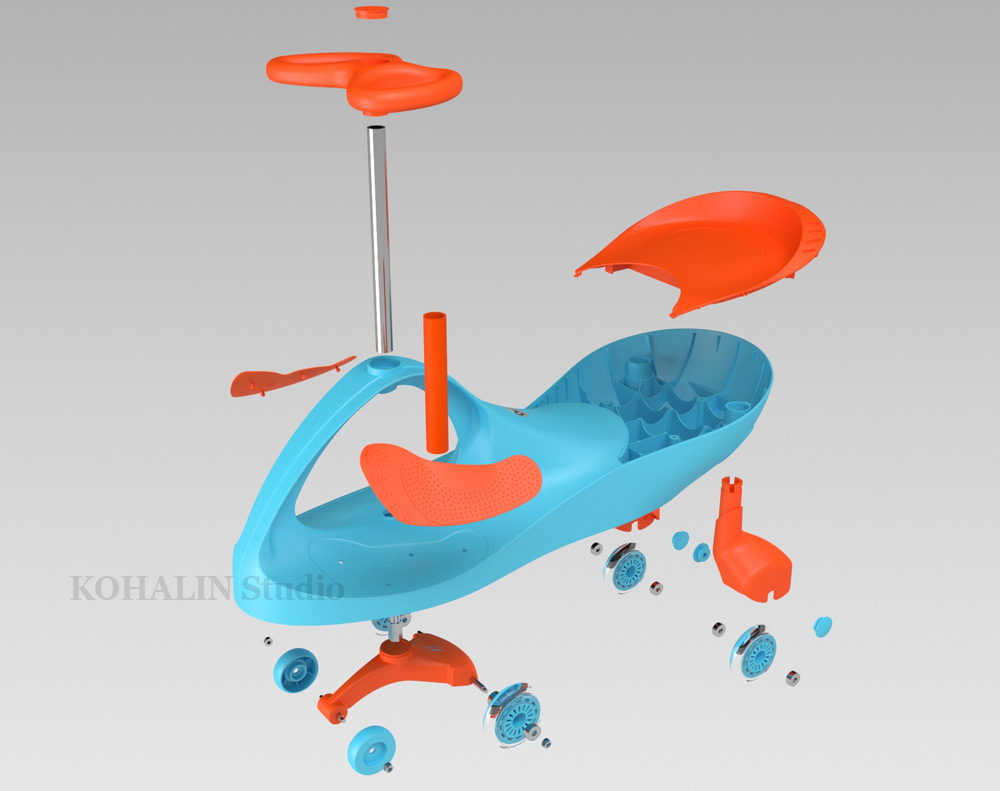 محصول لوپکار اسکوتری برای بازی کودکان می باشد. باتوجه به اینکه این محصول از طراحی خاص برخوردار است، بهترین روش نشان دادن و معرفی محصول، انیمیشن دمونتاژ و انفجاری قطعات است.