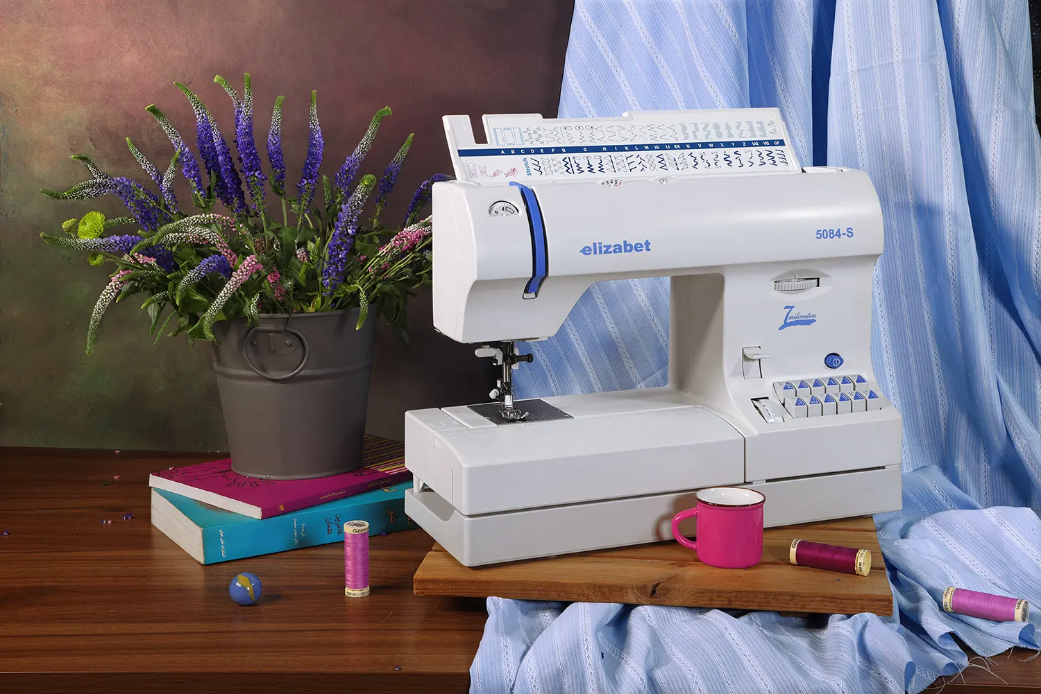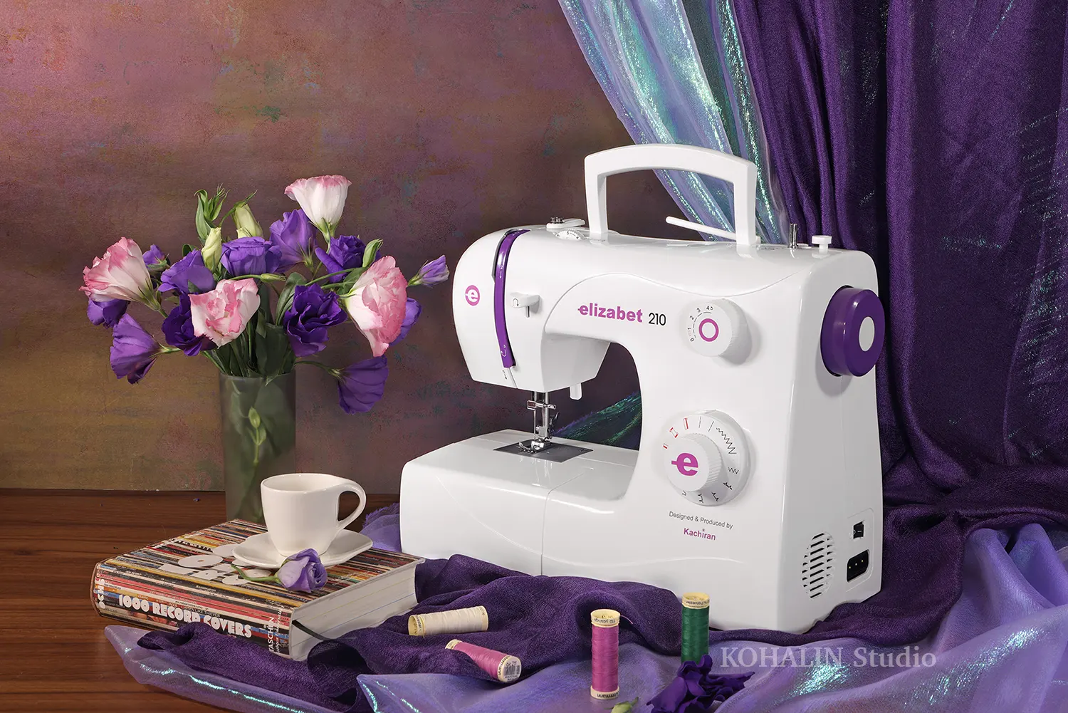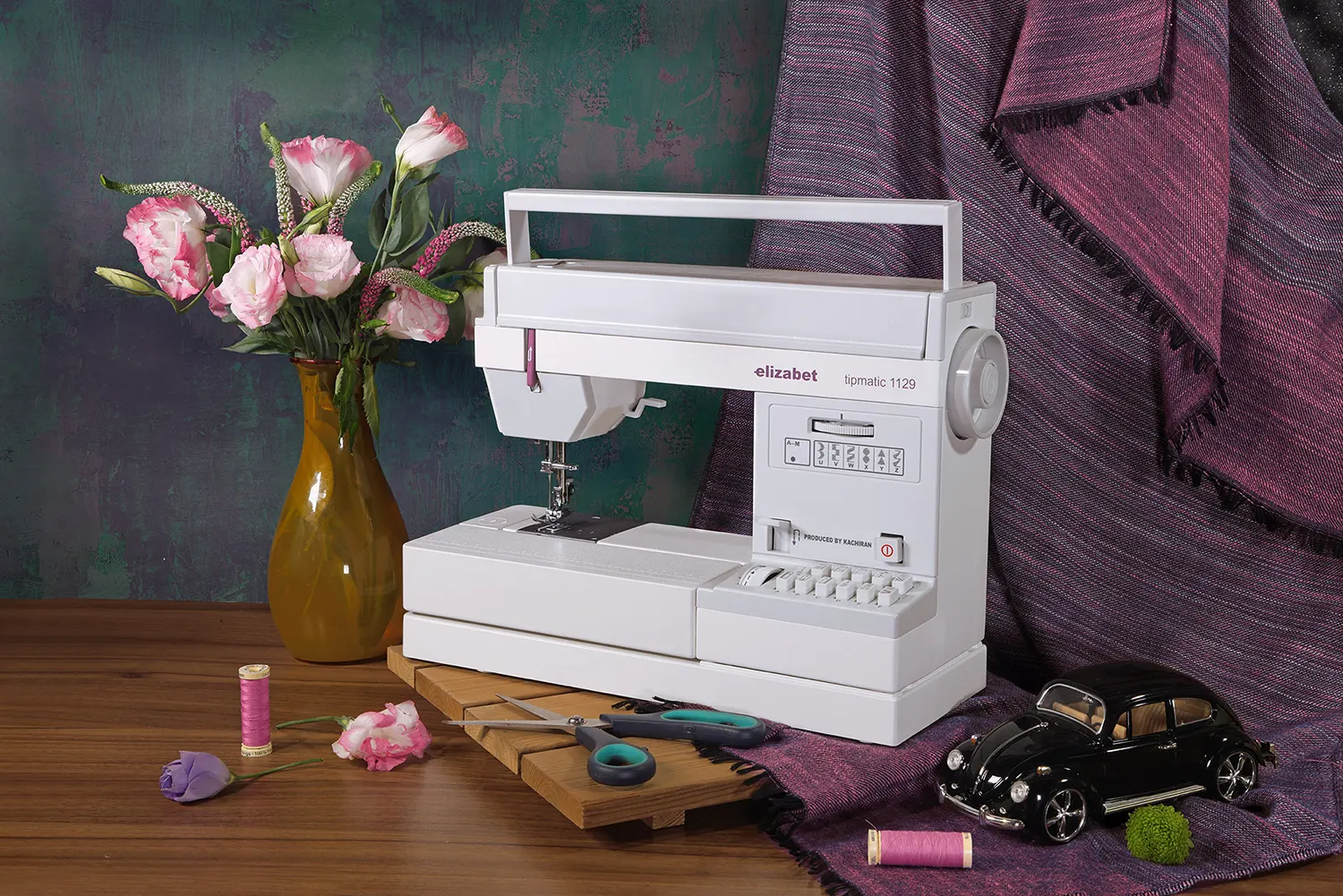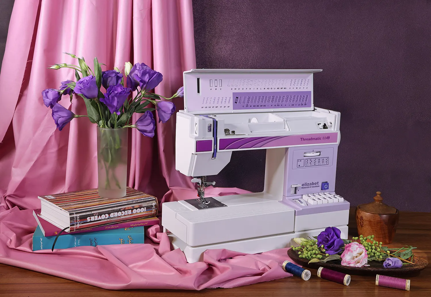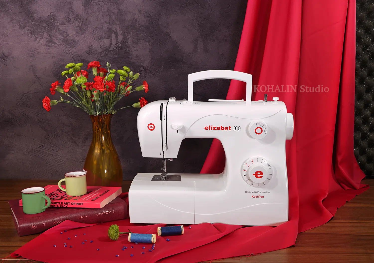 عکاسی تبلیغاتی و چیدمان از چرخ خیاطی های برند الیزابت محصول تولیدشده شرکت کاچیران