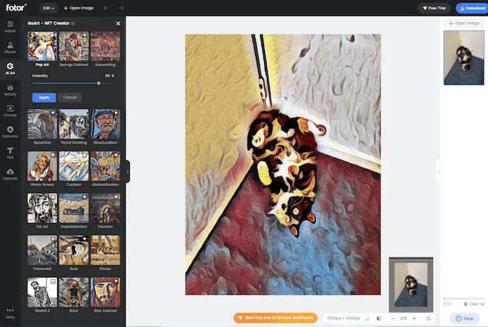 Fotor یک ویرایشگر تصویر آنلاین رایگان است. یعنی هیچ نرم افزاری برای دانلود وجود ندارد. ابزار GoArt این نرم افزار عکس ها را در چندین سبک مختلف به نقاشی تبدیل می کند.