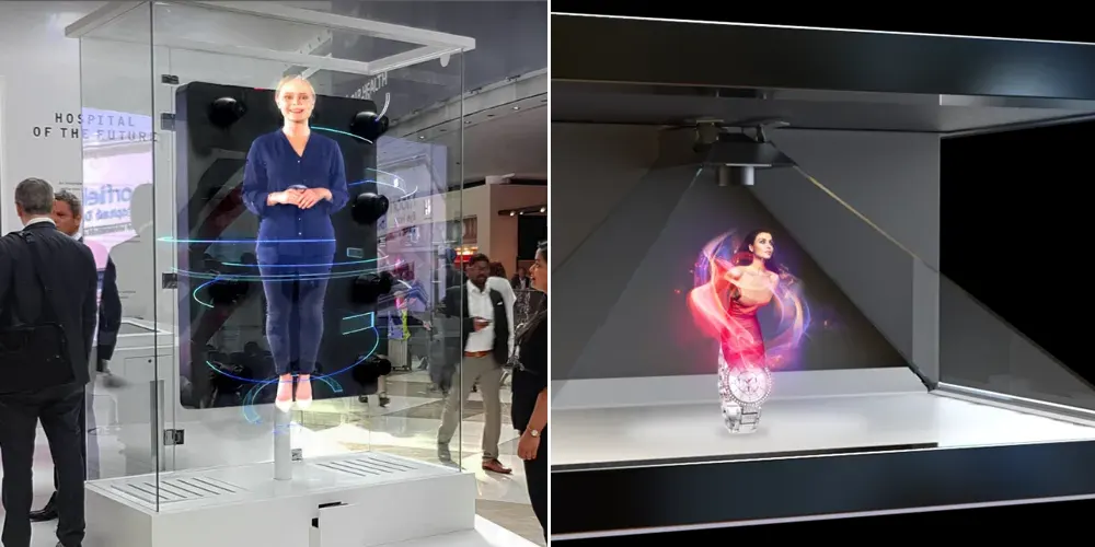 Holographic Displays نمایشگرهای هولوگرافیک: تبلیغات سه بعدی هولوگرافیک از فناوری لیزر برای ایجاد تصاویر سه بعدی و اغلب شفاف استفاده می کند که به نظر می رسد در فضا شناور هستند. این نمایشگرهای چشم نواز را می توان برای نمایش محصولات یا تبلیغات انیمیشن جذاب استفاده کرد.